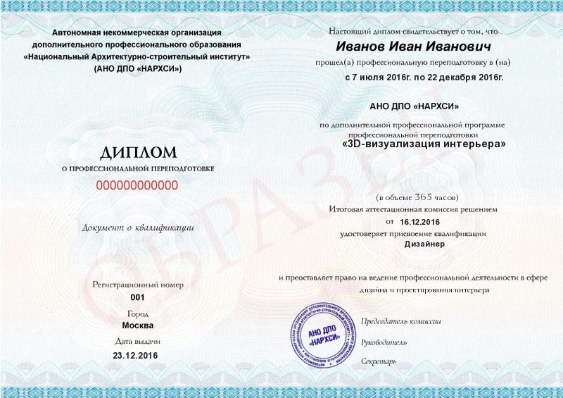 Учебный план программы профессиональной переподготовки «3D-визуализация интерьера» с присвоением квалификации «Дизайнер»