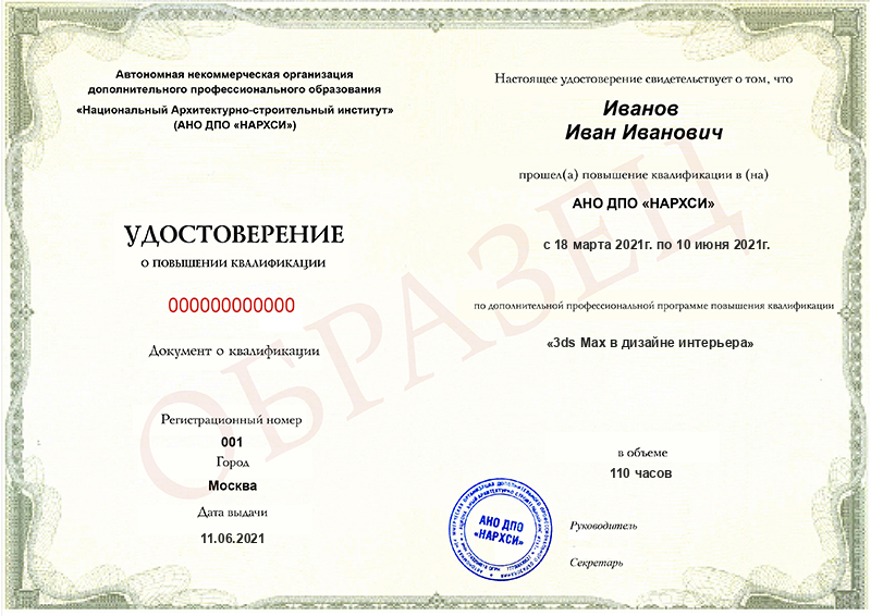Учебный план программы повышения квалификации «3Ds Max в дизайне интерьера»