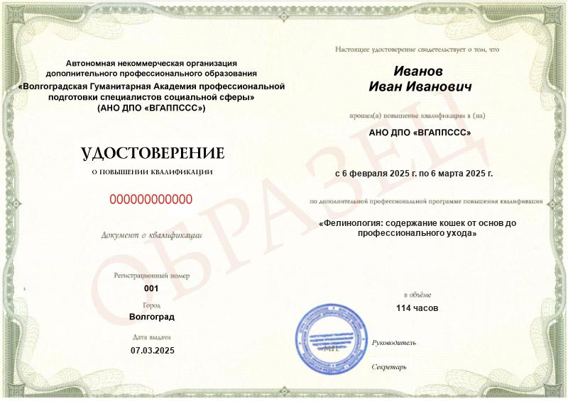 или Свидетельство о дополнительном образовании по программе «Фелинология: содержание кошек от основ до профессионального ухода». - Электронные сертификаты за посещенные онлайн-вебинары.