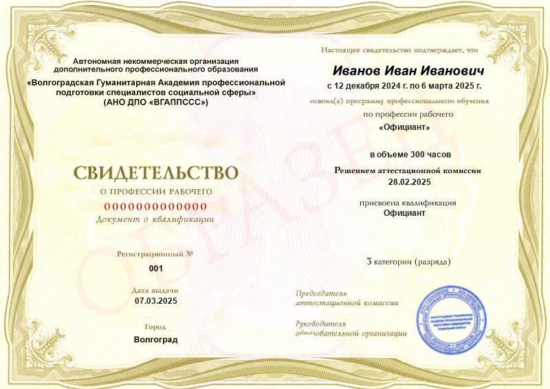 Да, АНО ДПО «ВГАППССС» выдаёт документы о квалификации установленного организацией образца, возможность выдачи образовательной организацией документов установленного образца регламентирована приказом Минобрнауки РФ №499.