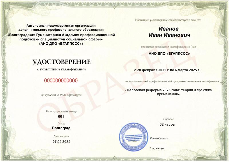 Обзор программы повышения квалификации «Налоговая реформа 2026 года: теория и практика применения»