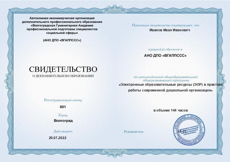 При отсутствии требуемого образования вам будет выдано свидетельство о дополнительном образовании в электронном виде.